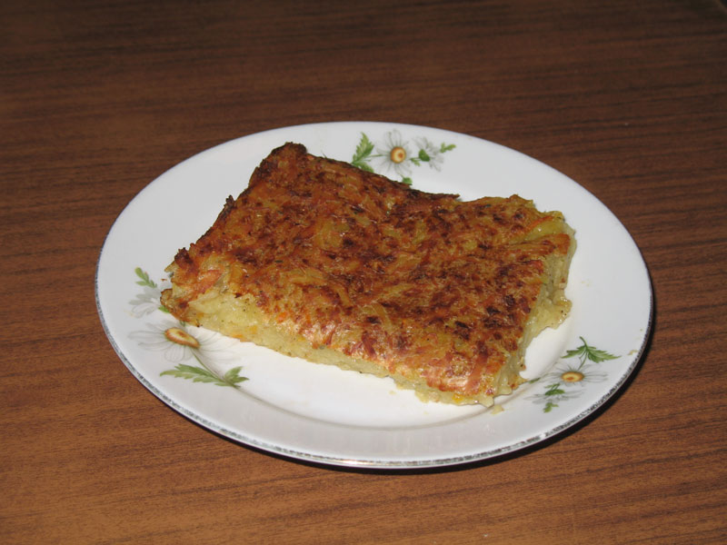 Umutiti testo od jaja, mleka, brasna, ulja i soli po ukusu. Smesa treba biti malo gusca od smese za palacinke. Krompir i crni luk narendati, posoliti i pobiberiti. Tepsiju premazati puterom, rasporediti na nju nadev i preliti testom. Peci u rerni na srednjoj vatri dok ne porumeni. Pomesati pola solje mlijeka sa 2 kasike putera i zagrijati da se puter rastopi. Pecenu razljevusu izvaditi iz rerne, iseci je na kocke i preliti prelivom od mleka i putera. Vratiti u zagrijanu iskljucenu rernu na nekoliko minuta. Servirati sa smesom od pavlake i mladog sira sa dodatkom belog luka posoljenu po zelji.