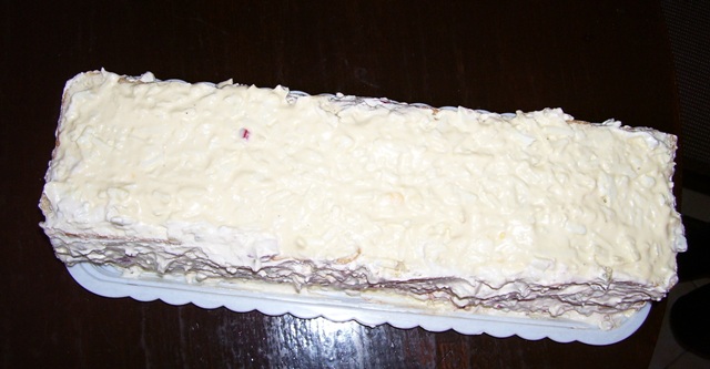 2. fil: rendan kačkavalj+pavlaka+majonez+seckana kuvana jaja+biber