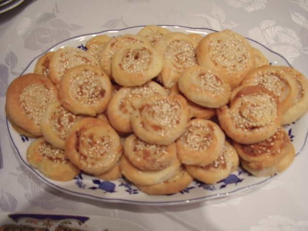 ½ lisnatog testa tanko razvući i premazati je tunjevinom iz jedne knzerve. Testo urolati i seći komade oko 1,5 cm debljine. Parčiće ređati u pleh obložen pek papirom i svaki komad pritisnuti malo rukom da se spljošti. Posuti susamom i peći u zagrejanoj rerni dok ne porumeni. Ko voli rešije može peći duže i obrnuto..Postupak ponoviti i sa drugom polovinom