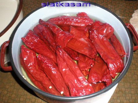 Paprike potopiti u mlaku vodu da omeksaju.