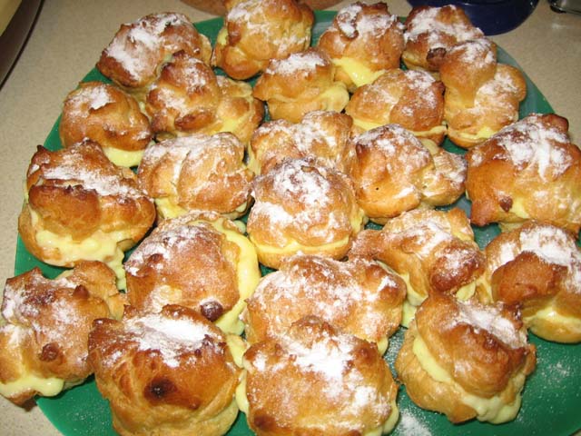 Ili jos lakse-jedna casa vode sa pola case ulja da provri, kad provri ,skloniti sa sporeta i nasuti casu brasna odjednom, promesari da se odvaja od serpe, skloniti da se potpuno ohladi i dodavati jedno po jedno jaje, rucno mesati. Peci na 220 stepeni, 20 min ne otvarati rernu. Fil po zelji od gore navedenih, meni najlaksi puding.Ne postoji covek kome to nje uspelo