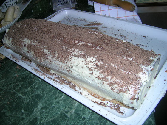 priprema fil; odvoj 2,5 dl mleka i u to otopi brasno a ostatak mleka prokuvaj sa secerom i nalivaj, kuvaj kao puding na laganoj vatri uz stalno mesanje da se zgusti, /ja otopinu uvek nasipam kroz cediljku da izbegnem ev. grudvice