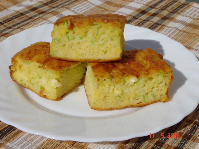 Peci u rerni dok ne porumeni. Pred kraj pecenja viljuskom probosti smesu na par mesta i ostaviti jos malo da se pece. Kad je gotovo izvaditi i seci dok je vruce. Sluzi se uz kiselo mleko ili jogurt.