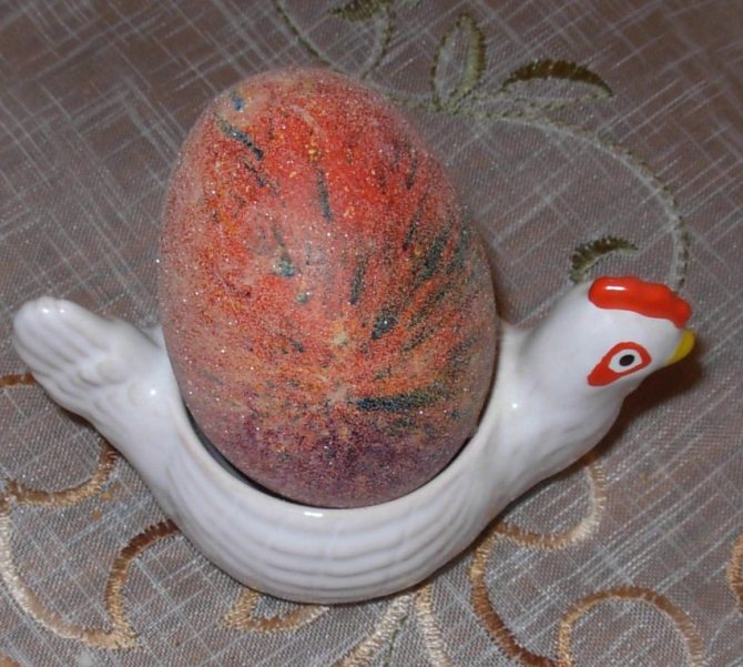 Obavezno skupljam ljuske od farbanih jaja, od prosle godine. Sintno ih izdrobim i kao i listice stavim u carapu i vezem na jaja. Farbana strana bi trebalo biti do jajeta da bi preuzela boju., i tako ih skuvam u vodi, a potom ih stavljam u neku od boja i to izgleda otprilike ovako