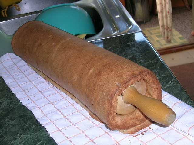 Pecen se okrene na vlaznu krpu posutu kristal secerom i umota oko oklagije da se ohladi